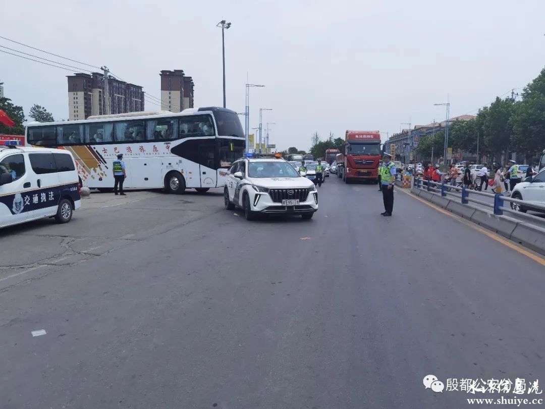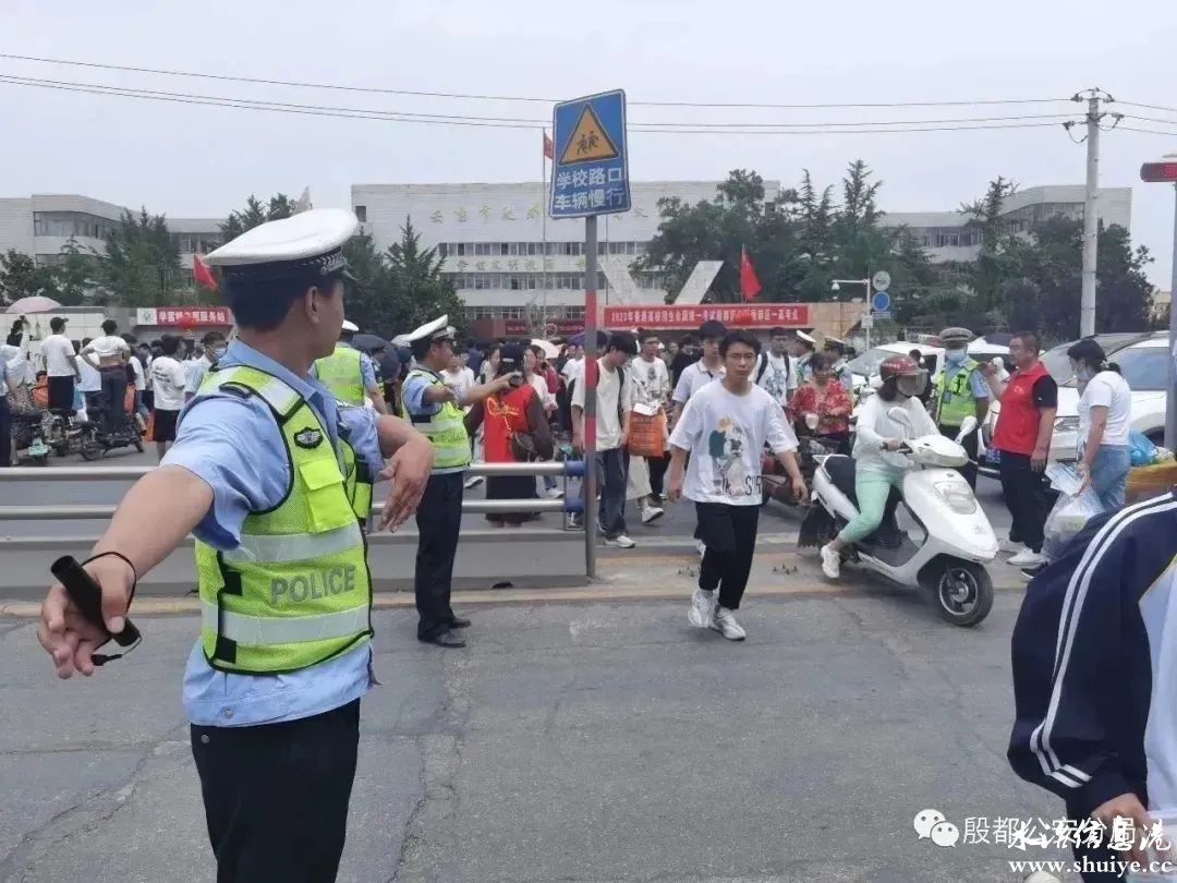 早上7点半,警灯闪烁,在警车护送下,一辆辆满载翰林高中高考学子的大巴车安全抵达位于水冶镇的殷都区第一高级中学,在电厂路派出所指导员邢宏祥和辅警杨俊强的指挥和引导下,井然有序的下车,走进校门奔赴考场。