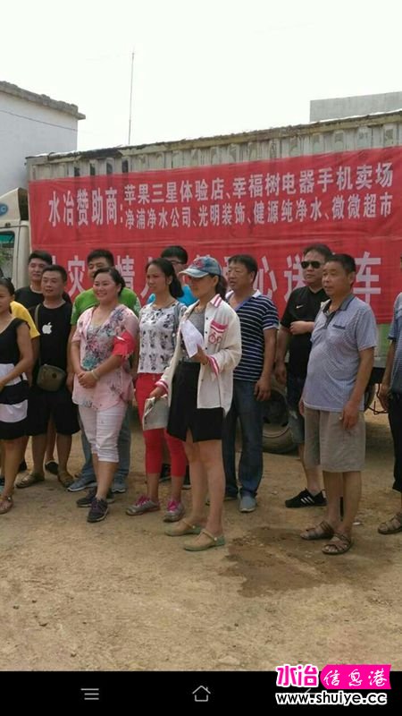 水冶光明装饰联合净浦净水、苹果三星体验店、幸福树电器手机卖场、健源纯净水、微微超市等多家商户为安阳县西部灾区无偿提供纯净水,爱心送水车将陆续抵达救援现场。请灾区群众相互转告,做好领取准备。真情无价,大爱无疆,众志成城,共渡难关… |