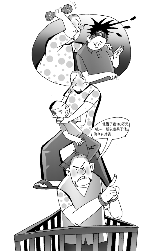漫画/王伟宾 河南商报记者 赵强 昨天上午,河南省高院在郑州中级法院公开开庭审理马公胜父子被邻居杀害一案。被告人焦某称,他愿意杀人偿命,但马公胜曾向他借了160万元,在此案中,马亦有过错。庭审中,检方列举5大理由,证明焦某所称的借款和借条均不客观。 回顾 父子俩被邻居杀害 凶手一审被判死刑 一审判决书中,法院审理查明,被告人焦某和被害人马公胜、马雨豪同住郑州市兴隆铺路9号附1号院。2012年7月7日中午12时许,被告人焦某以向马公胜索要借款为由,将马公胜叫到其家中,后双方发生矛盾,焦某随手抄起家中健身用的哑铃,砸向马公胜的头部,将马公胜杀死。
