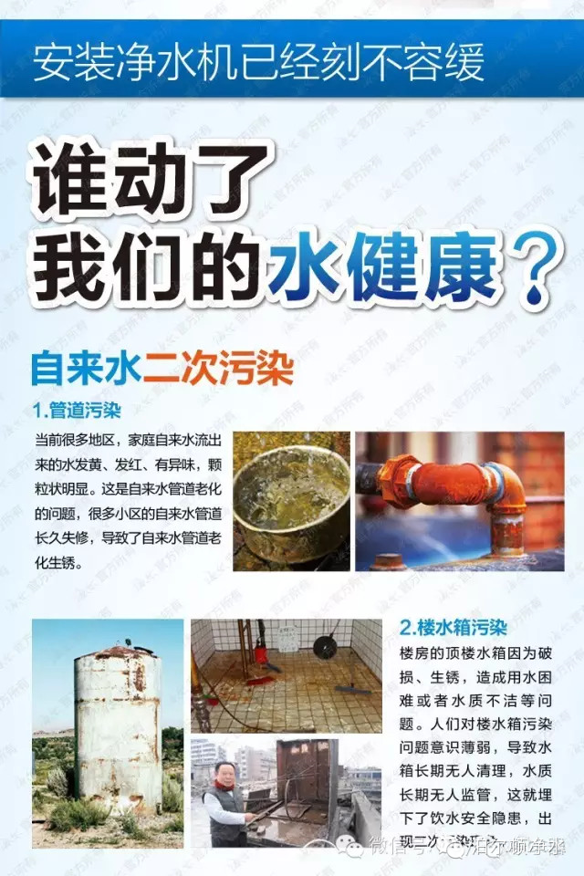 现在的水污染越来越严重,即使自来水厂能够将污染水中的有害物质基本清除掉,但是在自来水的运输过程中,随着自来水管道老化,也会对自来水产生“二次污染”。
