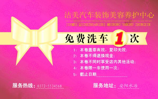 可以免费洗车一次!然后再编辑+删去我的答案